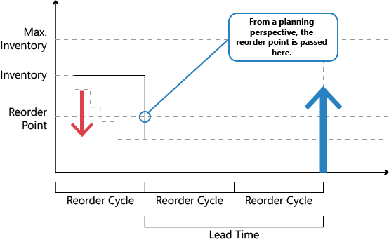 For reordering policies that use a reorder point, you can define a time bucket. This ensures that demand within the same time period is accumulated before checking the impact on the projected inventory and whether the reorder point has been passed. If the reorder point is passed, a new supply order is scheduled forward from the end of the period defined by the time bucket. The time buckets begin on the planning starting date.