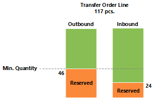 For example, if a transfer order line of 117 pieces is reserved against a sales line of 46 and a purchase line of 24, it is not possible to reduce the transfer line below 46 pieces even though this might represent excess supply on the inbound side.